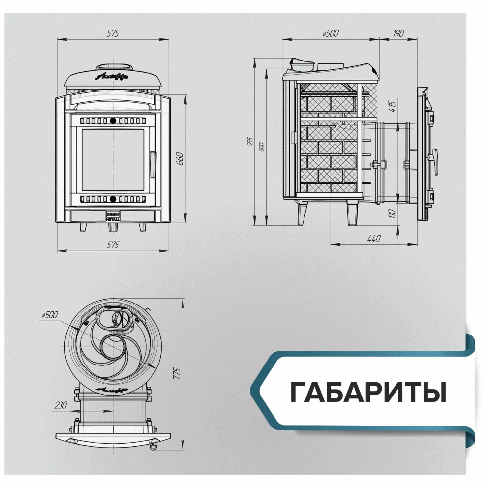 Диаметр дымохода - 115/140 мм