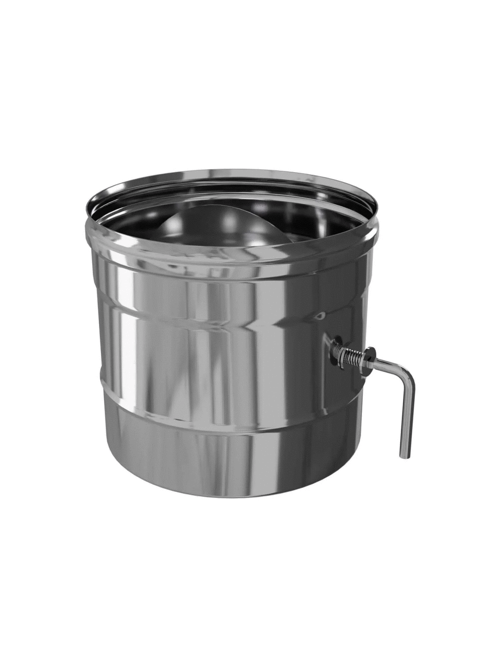 Элемент для регулировки тяги внутри дымового канала. Согласно требованиям безопасности, заслонка полностью не перекрывает сечение канала. Изготовлен из коррозионностойкой нержавеющей стали AISI 316L. Толщина стенки 0,8 мм. Холодная формовка раструбного соединения с идеальной геометрией и газоплотностью. Лазерная сварка встык обеспечивает тонкий и прочный шов, увеличивая в разы срок эксплуатации. Рабочая температура до 600°С.