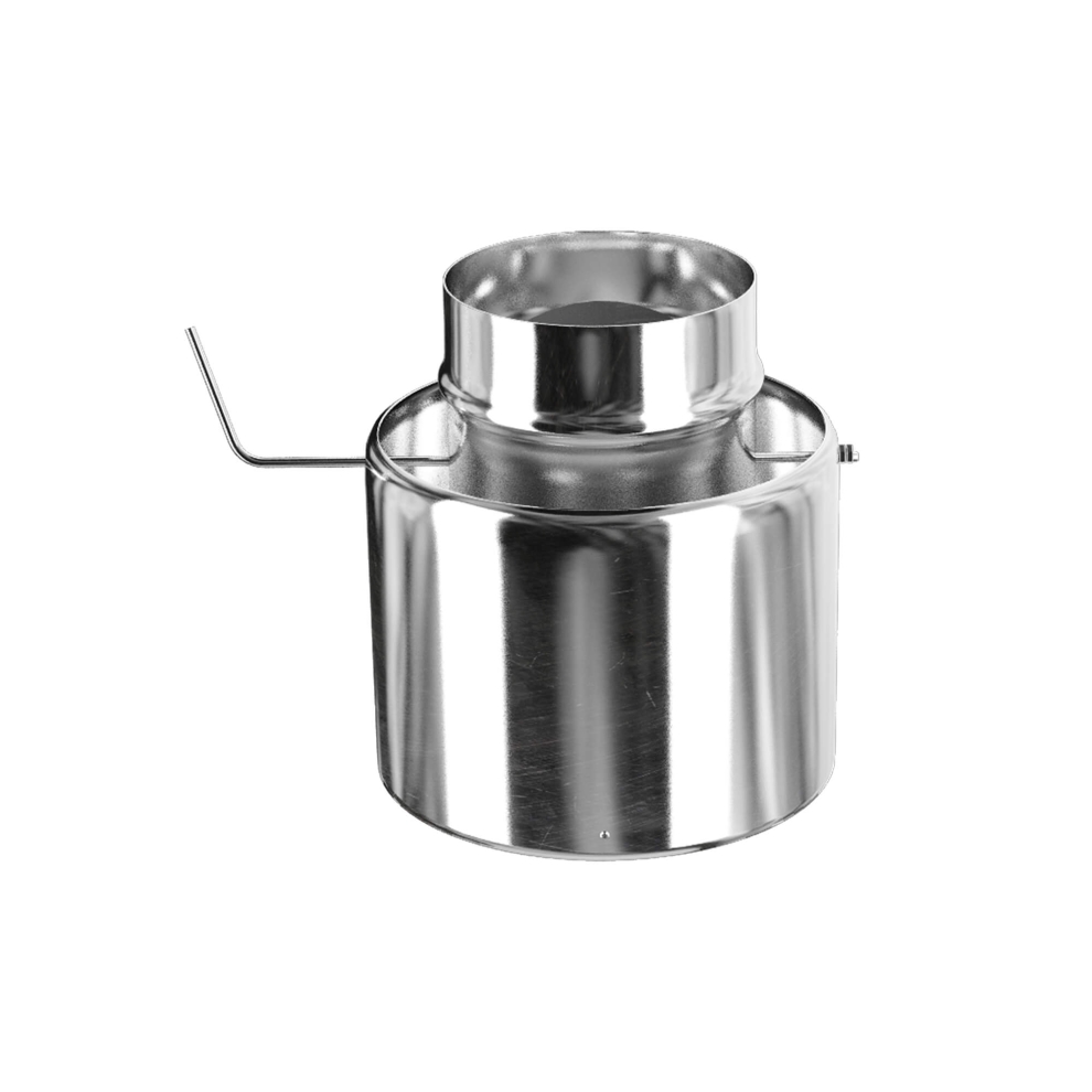 Двухконтурная дроссельная заслонка является важным элементом регулирования тяги в дымоходном канале. Ее первый контурный элемент размещается на дымоходе и плотно соединяет его конструкцию со старым сэндвичем. Второй контур заслонки предназначен для защиты помещения от теплового излучения и предотвращает перегрев ручки управления изделия. Дроссельная заслонка изготавливается из качественных жарокоррозионностойких сталей. Толщина первого контура составляет 1 мм, а второго - 0,5 мм, длина заслонки достигает 200 мм.
