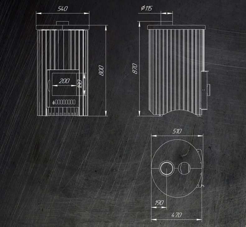 Материал топки ············· Жаростойкая нержавеющая сталь AISI 439