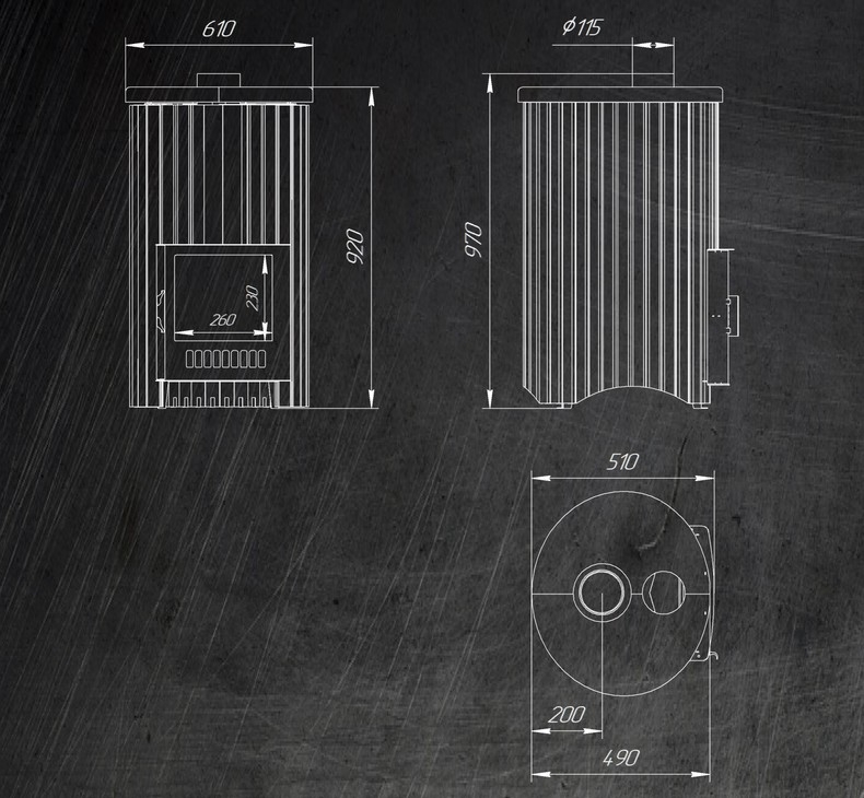 Диаметр дымохода ············· 115 мм.