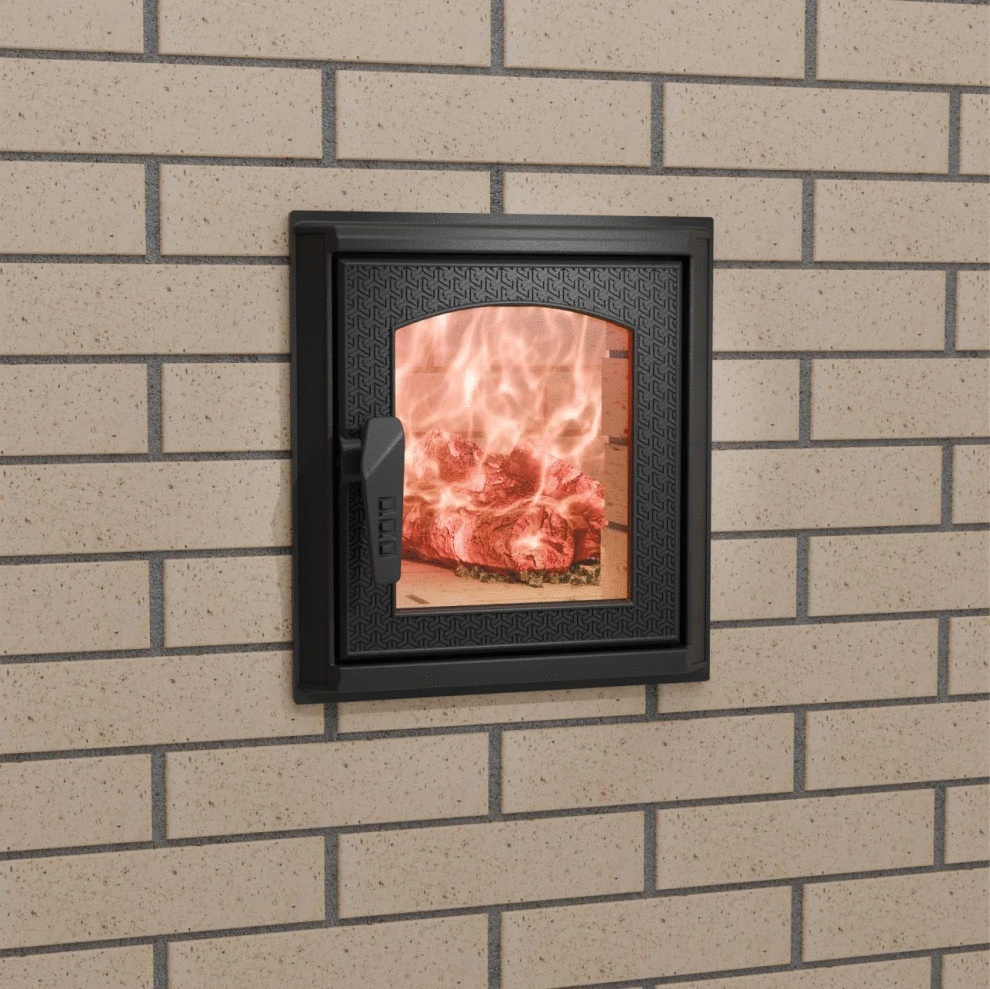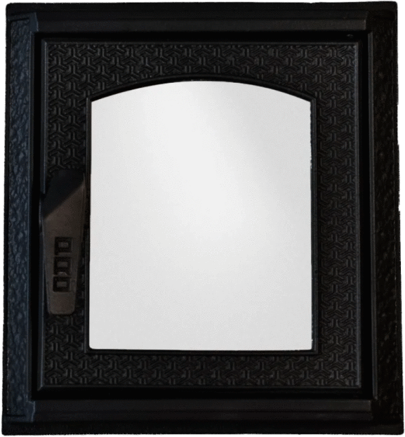 Дверца печная - используется для подкладывания дров в печь, панорамное стекло позволяет любоваться процессом горения. Выполнена методом чугунного литья, оснащена удобной в использовании ручкой и стильным орнаментом, позволяющим сделать очаг прекрасным предметом интерьера.