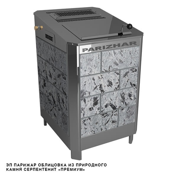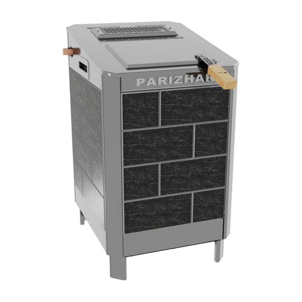 В электрических печах «ПАРиЖАР» получила дальнейшее развитие тема паротермального нагрева парильного помещения, создания в нем комфортного, сбалансированного по температуре и влажности режима. В этих модернизированных моделях электрофицированная схема регулирования уровня воды в баке парогенератора заменена на простую, надежную механическую систему подачи и регулирования уровня воды.Учитывая отзывы и пожелания клиентов, в новых электропечах предусмотрена закрывающаяся дверью (дверями) теплоизолированная емкость для камней, нагрев которой осуществляется автономно, не зависимо от режима работы парогенератора. А сам парогенератор перегретого пара, в зависимости от исполнения и мощности электропечи, может работать в двух или трех режимах по интенсивности парообразования.Конструктивные особенности печей «ПАРиЖАР», а так же специально разработанный для них пульт управления позволили создавать и поддерживать в парильном помещении различные температурно-влажностные режимы:«Сухой нагрев»: нагрев воздуха в парильном помещении осуществляется с помощью ТЭНов каменки. Дверь (двери) каменки открыты. Парогенератор не задействован.«Режим парогенерации»: формирование микроклимата в парильном помещении осуществляется перегретым до 300-330 С паром, генерируемым парогенератором. Парогенератор работает в одном из штатных режимов. ТЭНы каменки либо выключены, либо включены, дверь (двери) каменки закрыта.«Комбинированный режим»: нагрев парильного помещения и создание в нем комфортного микроклимата обеспечивается одновременно работающим парогенератором в избранном режиме и дополнительным нагревом воздуха ТЭНами каменки, через ее открытую дверь (двери).Во всех режимах, при открытой двери (дверях) каменки ТЭНы каменки и парогенератора активируются по сигналу датчика температуры в соответствии с заданной температурой на пульте управления. При закрытой каменке работа ее ТЭНов осуществляется в автоматическом режиме, в зависимости от температуры внутри каменки.Одновременно со значением текущей температуры на пульте управления инициируется также и значение относительной влажности в парильном помещении.Печь изготавливается из нержавеющей стали. Рекомендуется подключать электропечь к центральному водоснабжению, при его отсутствии допускается подключение к выносному баку.
