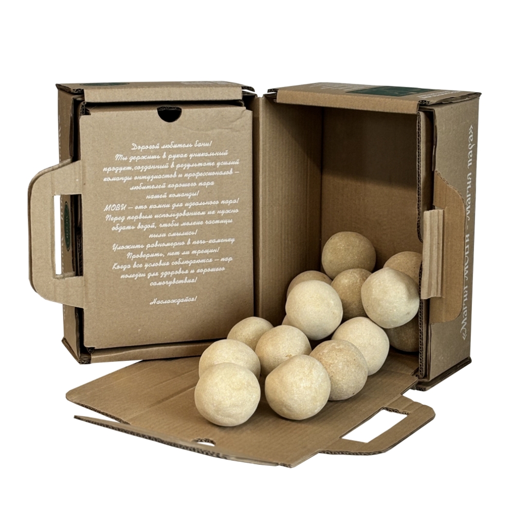 Керамические камни для бани марки МОВИ, изготовлены вручную по инновационной технологии из экологически чистых материалов и подходят для любых типов печей. Камни закаливаются при температуре 1350°C. Благодаря этому они устойчивы к экстремальным температурам и отличаются высокой износостойкостью. Сроки эксплуатации керамических камней в 3-4 раза превышают сроки эксплуатации природных камней. Уникальная форма этих камней позволяет идеально заполнять каменку любой конфигурации. Благодаря оптимальному размеру горячий воздух легко циркулирует с нижних горячих слоев в верхние, что приводит к быстрому нагреву каменки.
