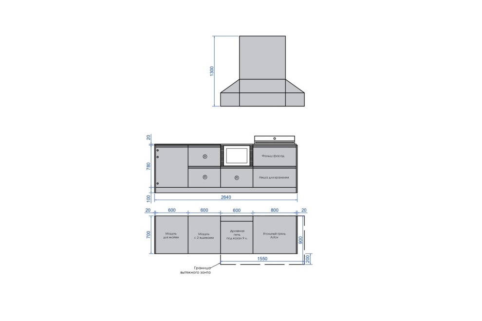 7. Вытяжной зонт 1550х900х1300 мм без подсветки
