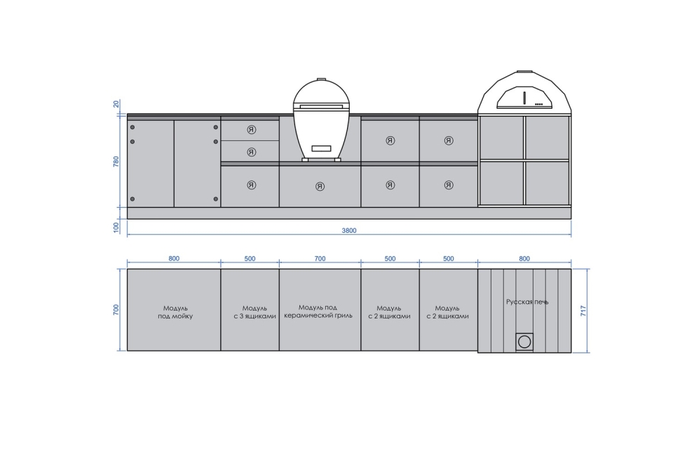 При необходимости замены техники в базовой комплектации или покупки данной модели уличной кухни без техники, обращайтесь к нашим менеджерам по тел.