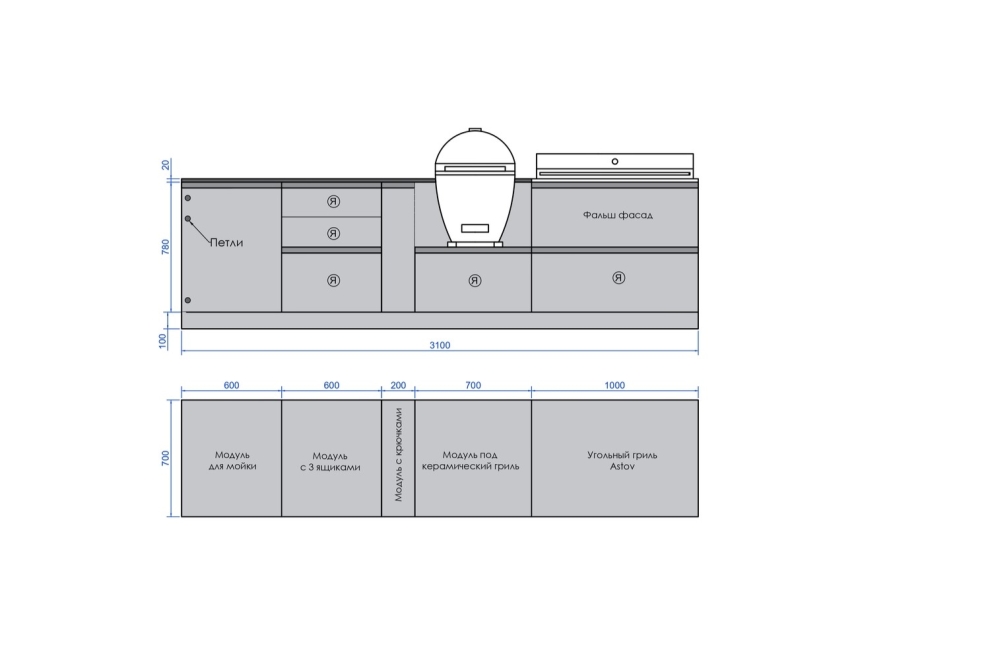 Кухня Astov BBQ № 16 (ширина 3100 мм)