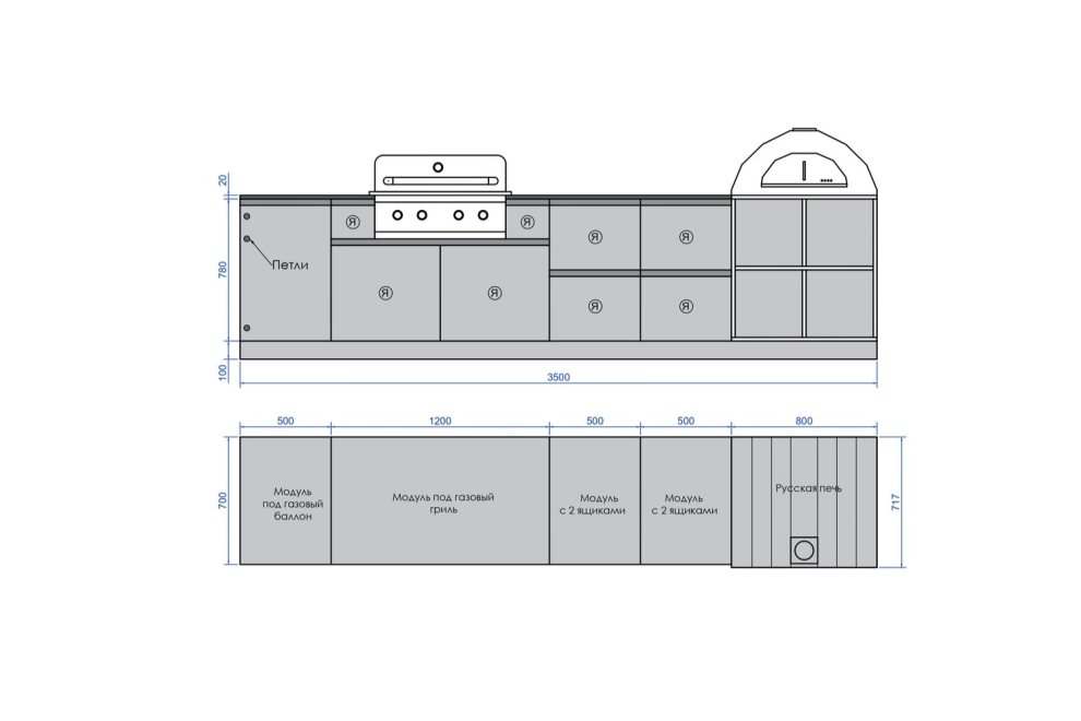 При необходимости замены техники в базовой комплектации или покупки данной модели уличной кухни без техники, обращайтесь к нашим менеджерам по тел.