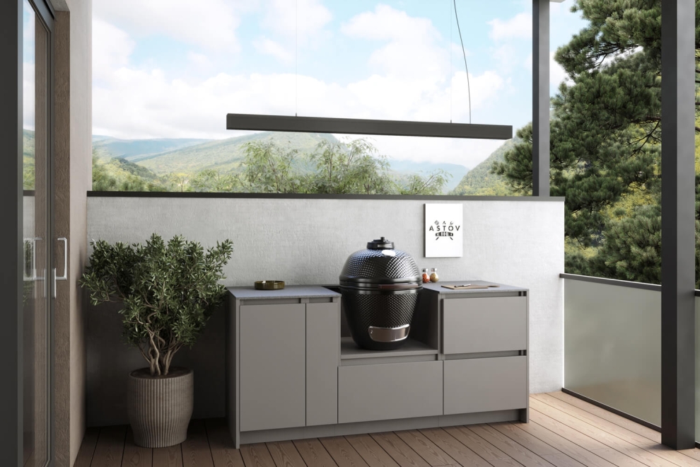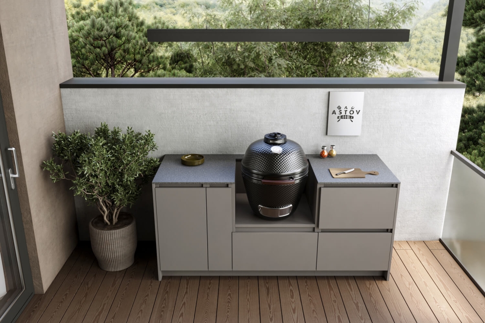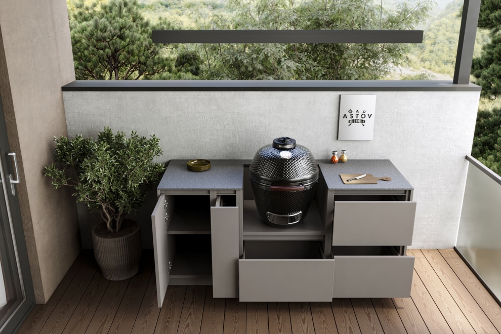 Кухня Astov BBQ из металла стильная и долговечная. Она устойчива к любым погодным условиям. А керамический гриль — отличный выбор для тех, кто любит готовить на улице. Он сохраняет тепло и помогает готовить вкусную еду, различными способами, с особым ароматом.
