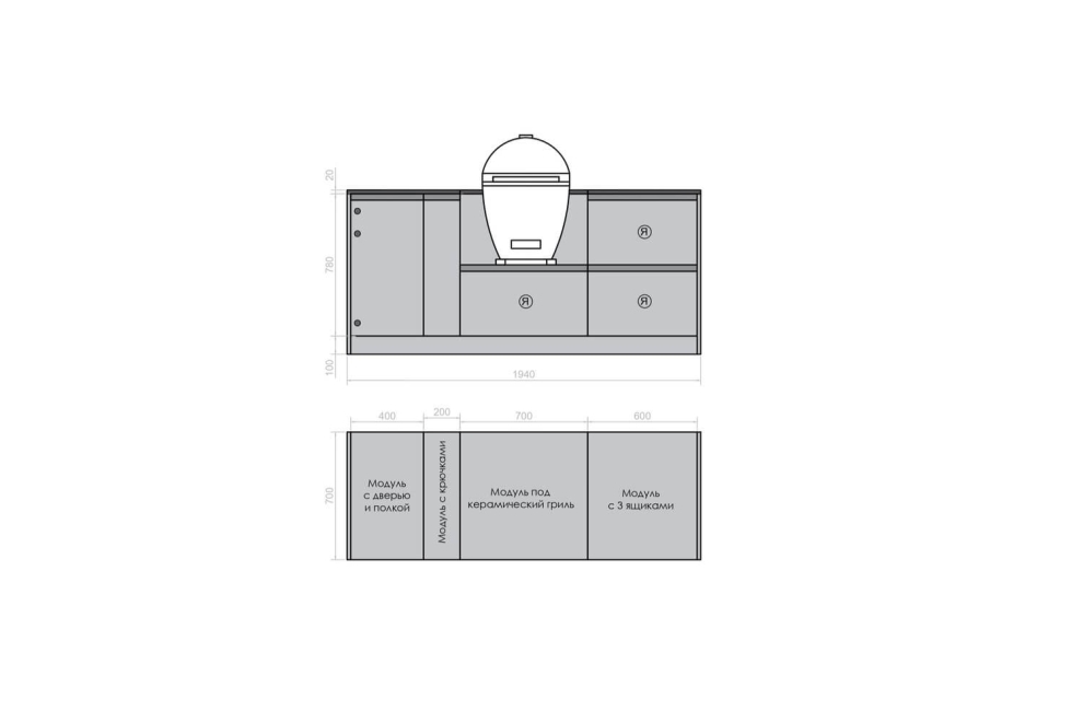 При необходимости замены техники в базовой комплектации или покупки данной модели уличной кухни без техники, обращайтесь к нашим менеджерам по тел.