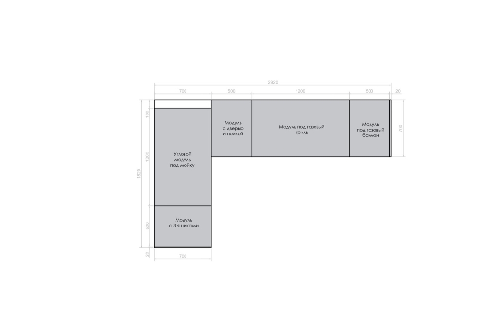5. Модуль под газовый гриль с 4мя выдвижными ящиками 1200 мм