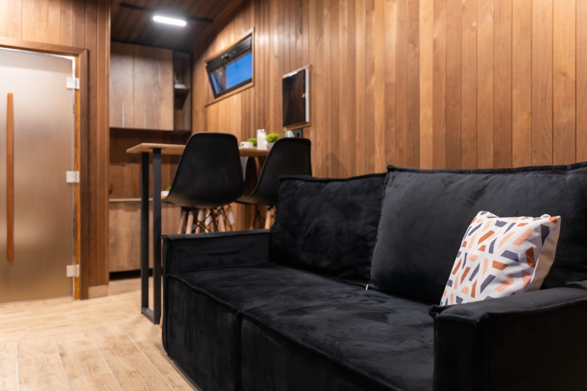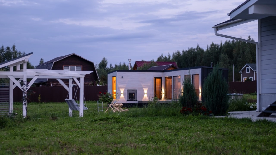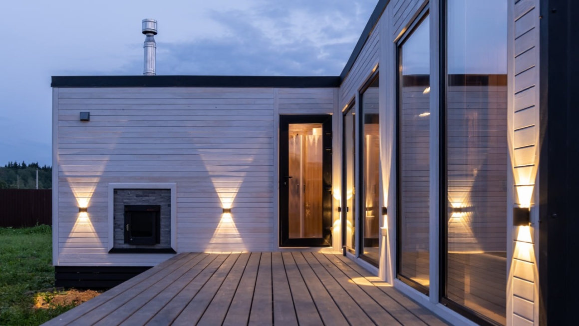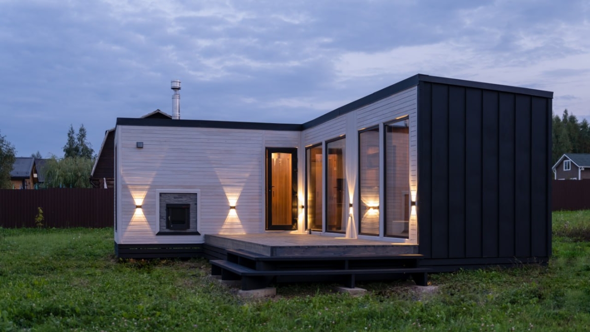 Модульная Г-образная баня BoxBe Cozy House без стройки на участке