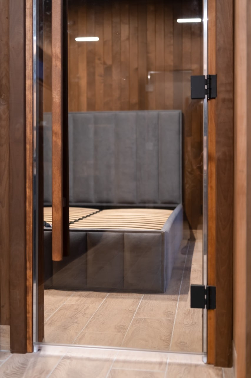- Двери Престиж с алюминиевой коробкой и магнитом ко контуру двери. Закалённое стекло