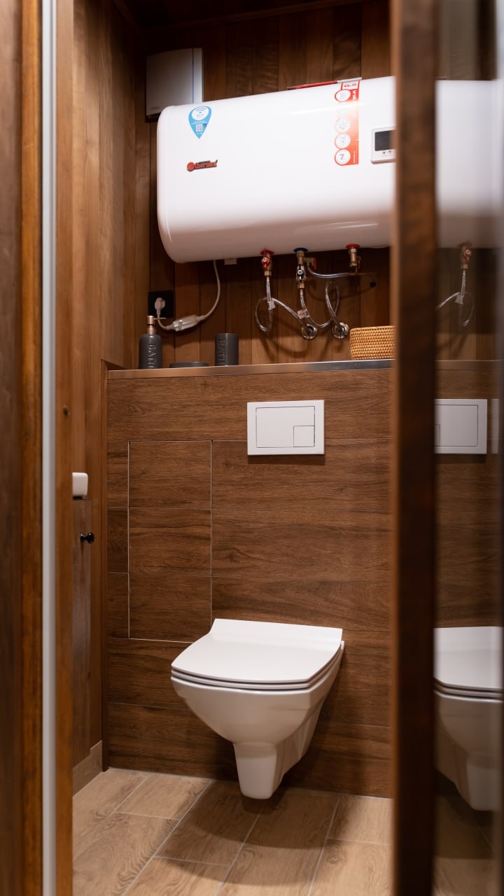 - Коллекторный узел, технические розетки, датчик протечки, автоматический запорный клапан на воду, технический экстренный слив воды (всё скрыто)