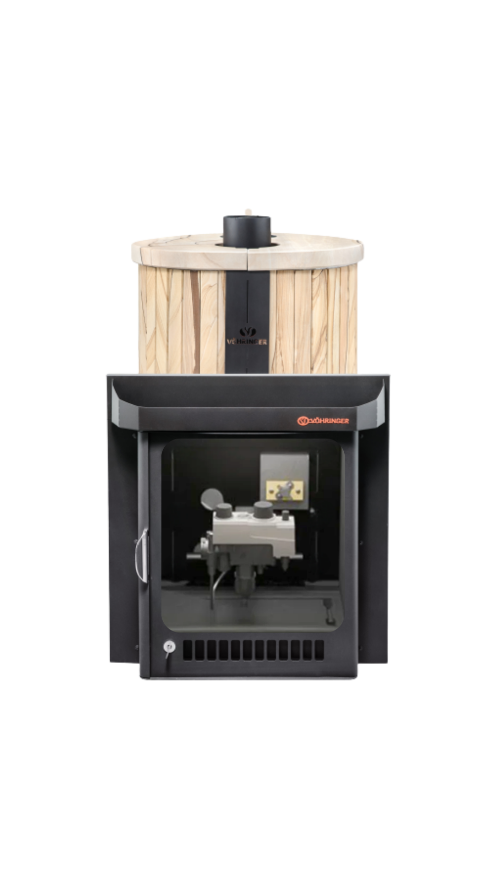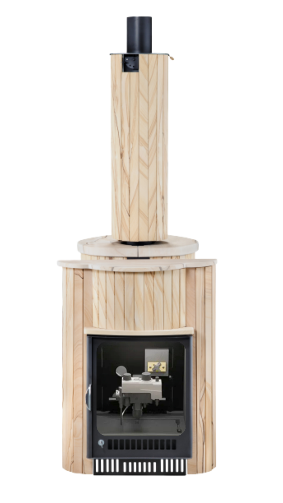 Печь лучше всего работает в комплекте с дымоходом. В Банной системе "Ферингер" за прогрев парной отвечает -