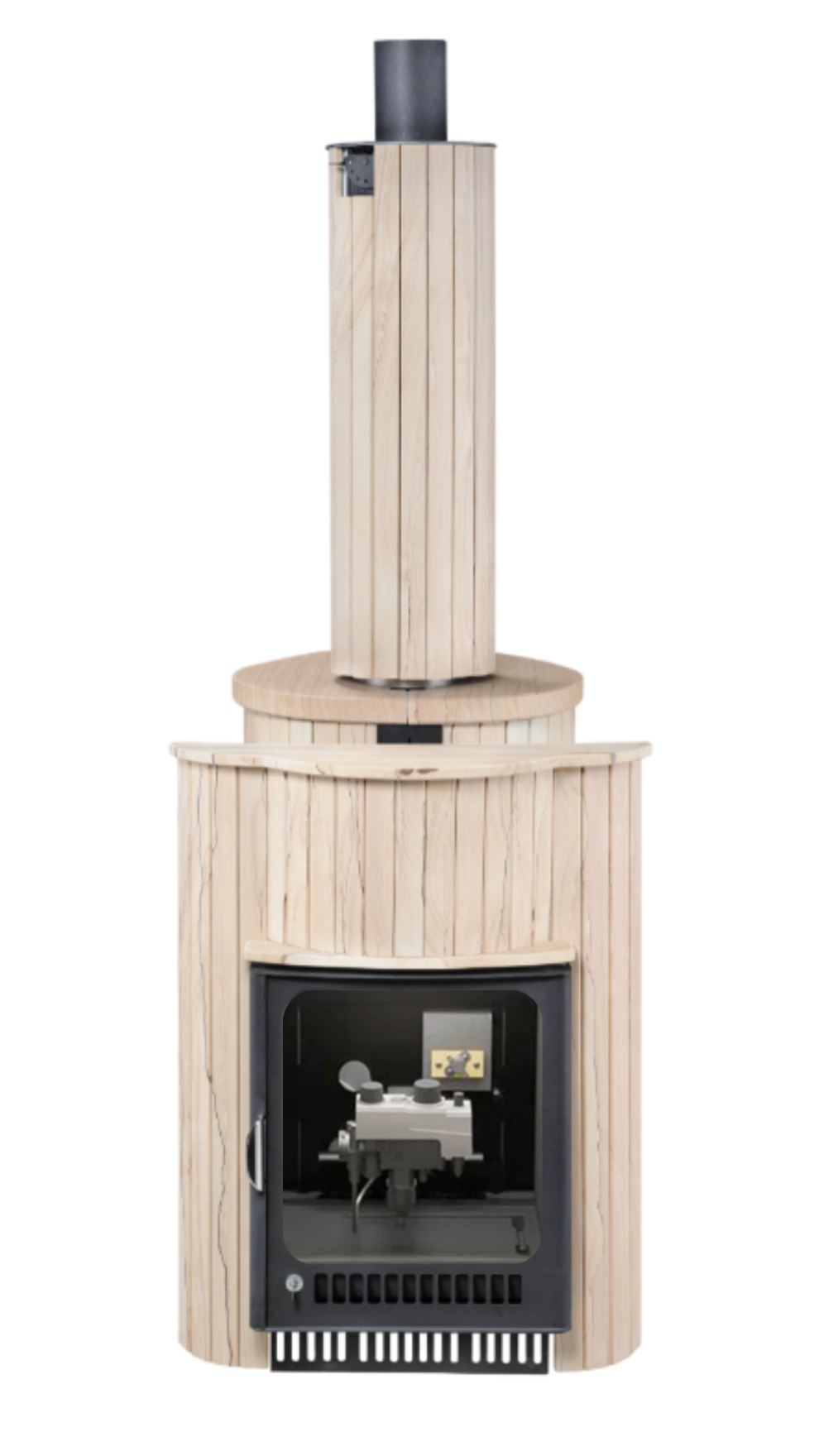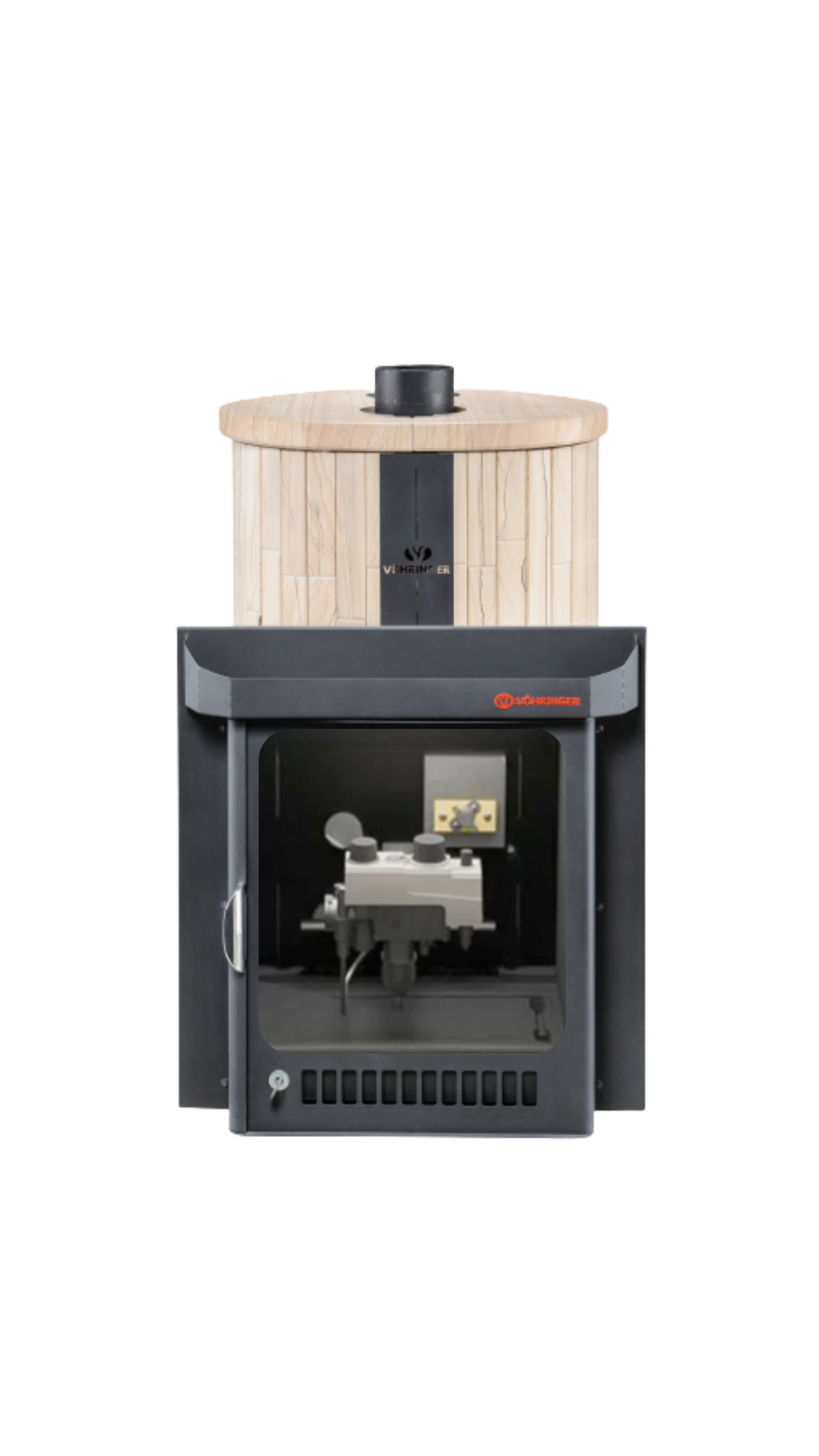 Печь лучше всего работает в комплекте с дымоходом. В Банной системе "Ферингер" за прогрев парной отвечает -