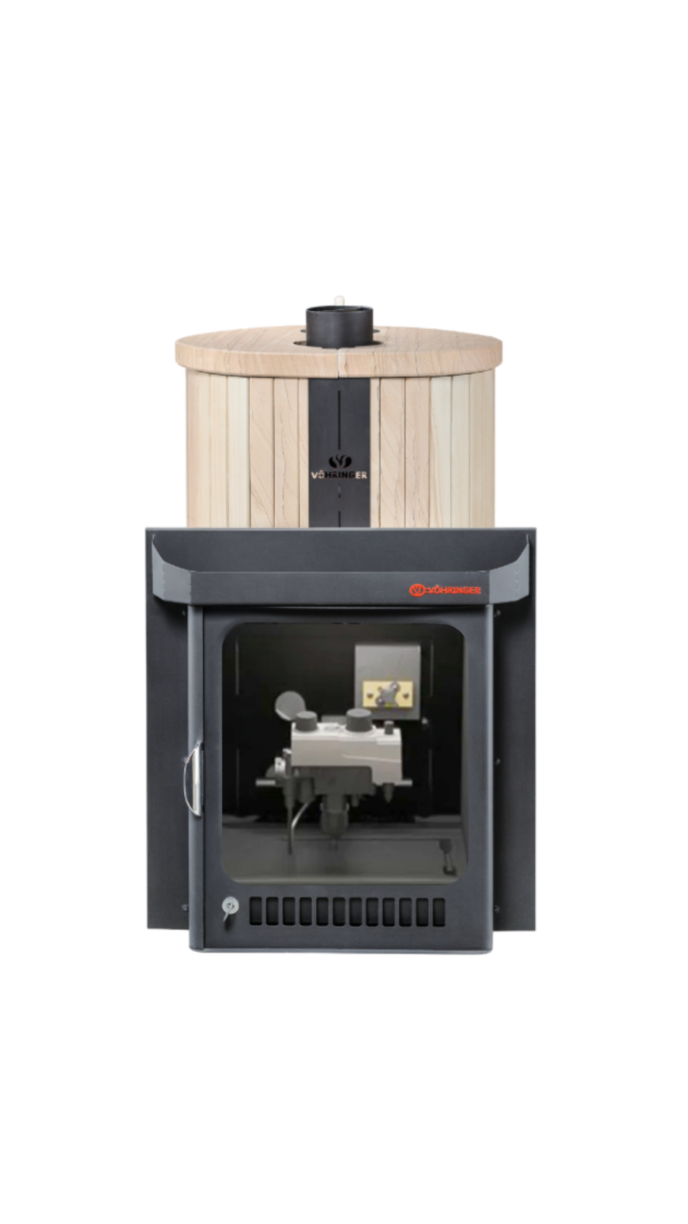 Печь лучше всего работает в комплекте с дымоходом. В Банной системе "Ферингер" за прогрев парной отвечает -