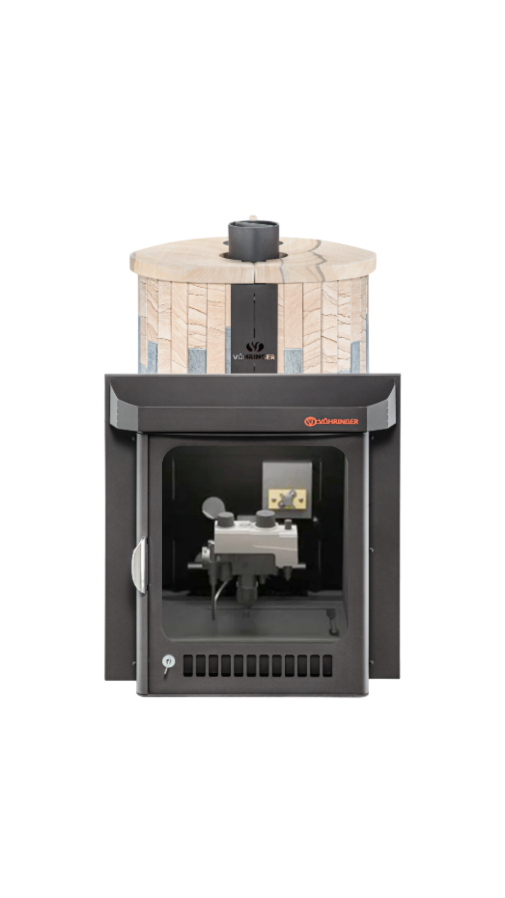Печь лучше всего работает в комплекте с дымоходом. В Банной системе "Ферингер" за прогрев парной отвечает -