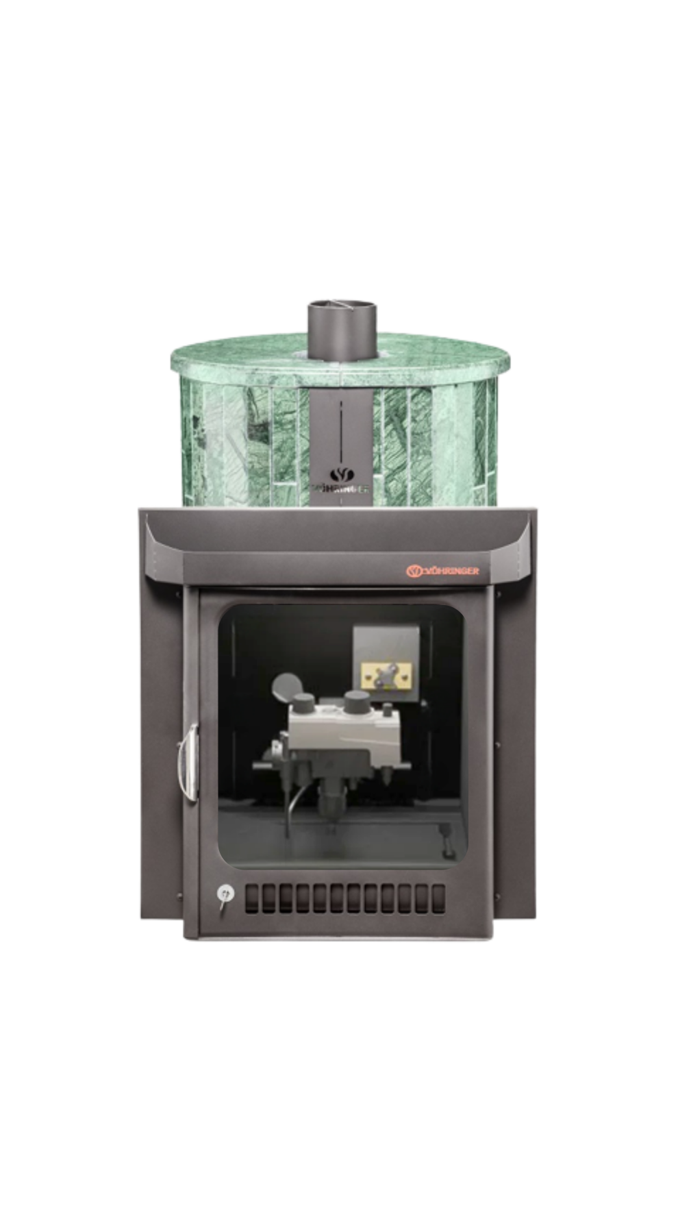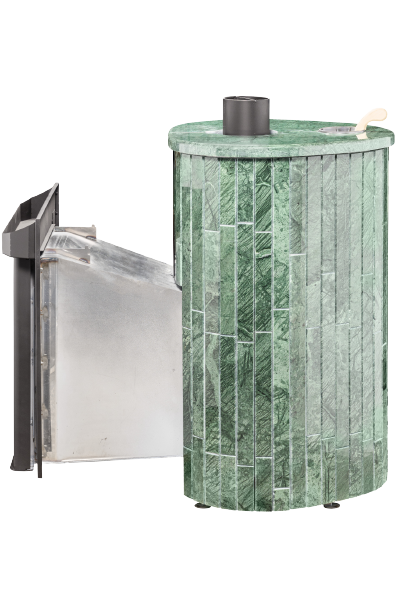 Печь лучше всего работает в комплекте с дымоходом. В Банной системе "Ферингер" за прогрев парной отвечает -