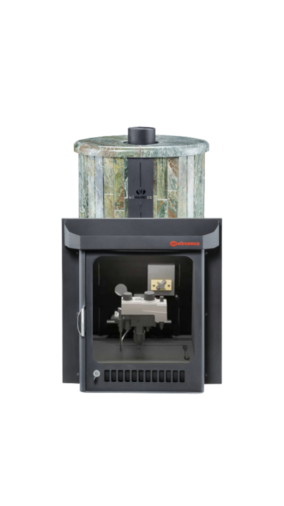 Печь лучше всего работает в комплекте с дымоходом. В Банной системе "Ферингер" за прогрев парной отвечает -