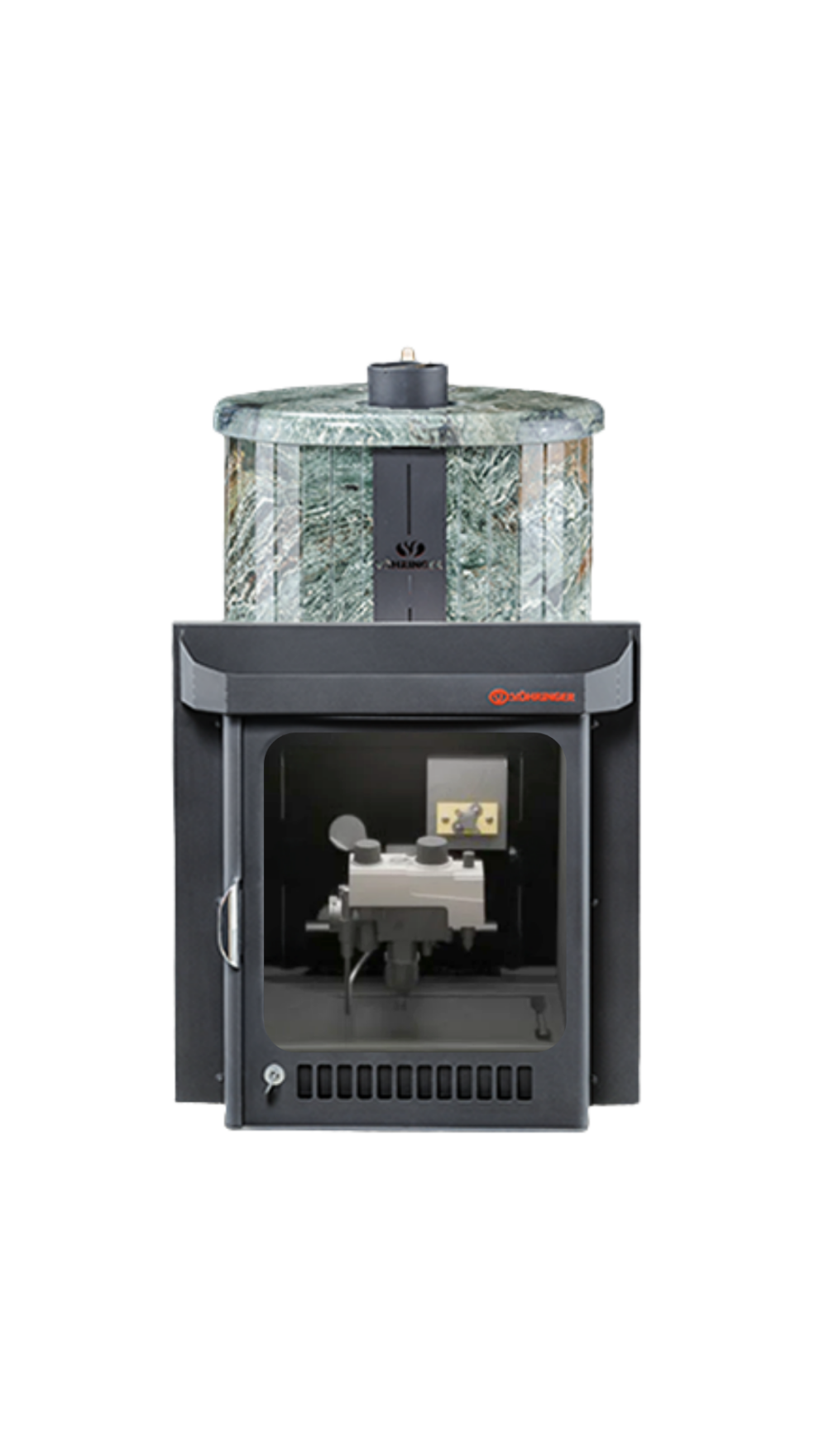Печь лучше всего работает в комплекте с дымоходом. В Банной системе "Ферингер" за прогрев парной отвечает -