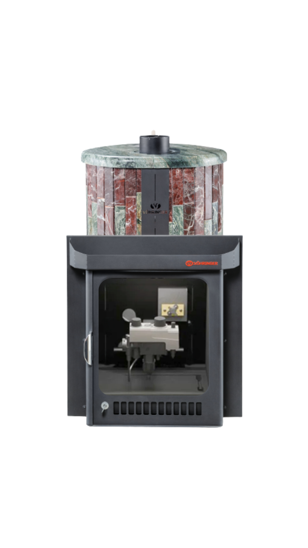 Печь лучше всего работает в комплекте с дымоходом. В Банной системе "Ферингер" за прогрев парной отвечает -