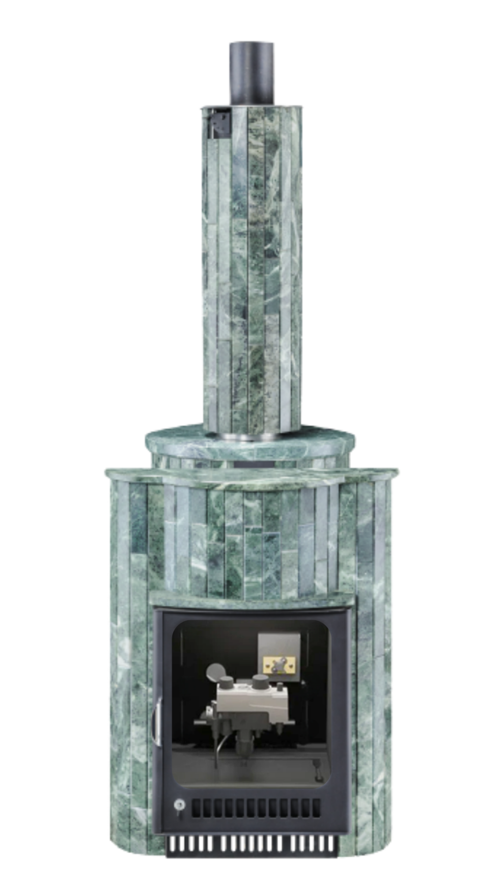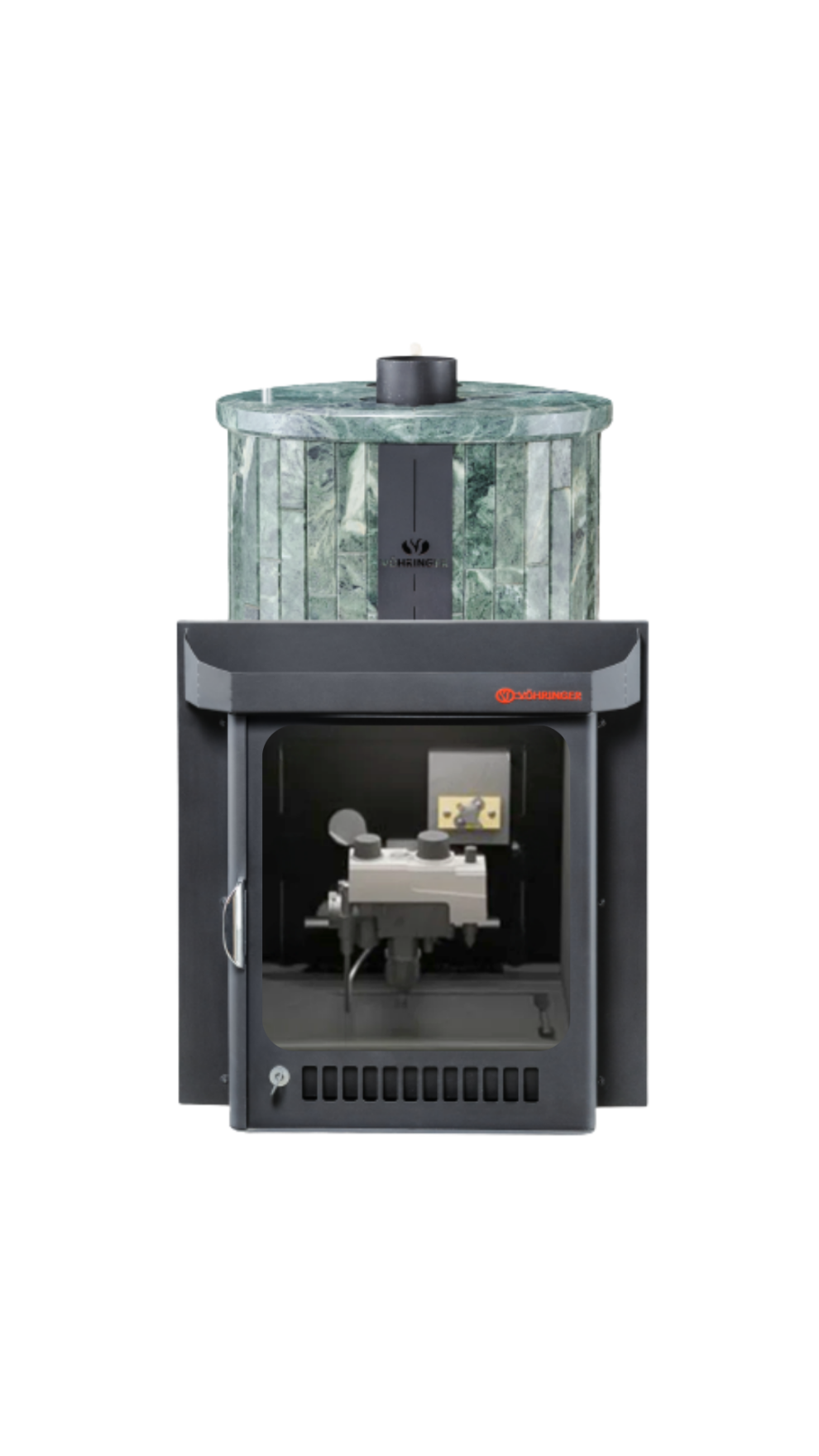 Печь лучше всего работает в комплекте с дымоходом. В Банной системе "Ферингер" за прогрев парной отвечает -