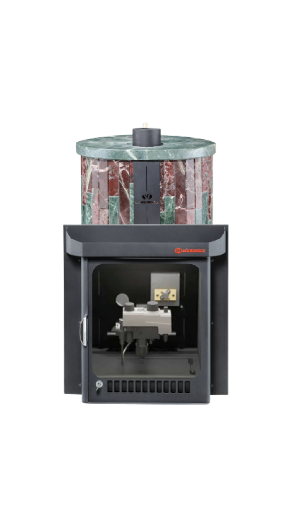Печь лучше всего работает в комплекте с дымоходом. В Банной системе "Ферингер" за прогрев парной отвечает -