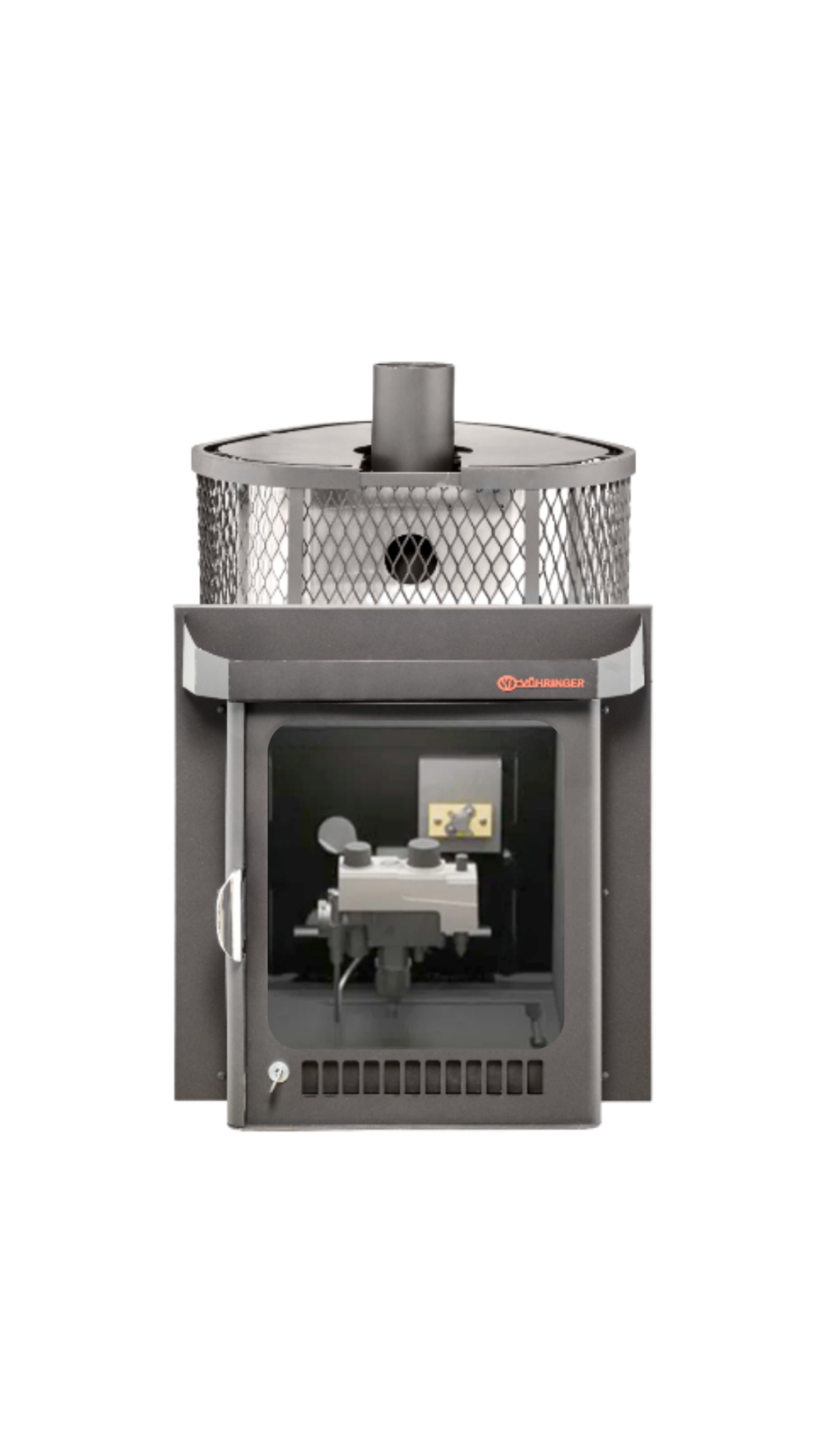 Печь лучше всего работает в комплекте с дымоходом. В Банной системе "Ферингер" за прогрев парной отвечает -
