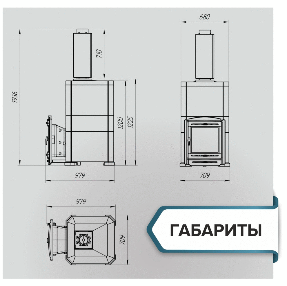 Масса печи в сборе - 808 кг