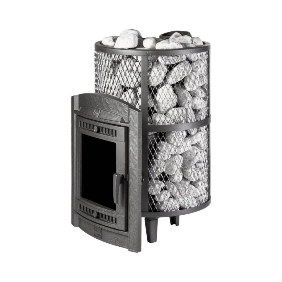 Компактная и экономичная модель. Кожух печи изготовлен в виде сетки из стали и полностью заполняется природными камнями, обеспечивая высокую динамику нагрева парильного помещения.