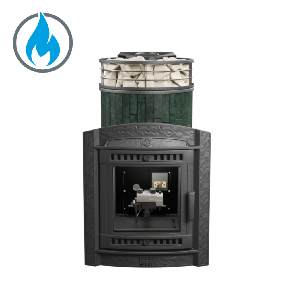 Печь банная «Атмосфера L» верде гватемала ламель + сетка с газовой горелкой