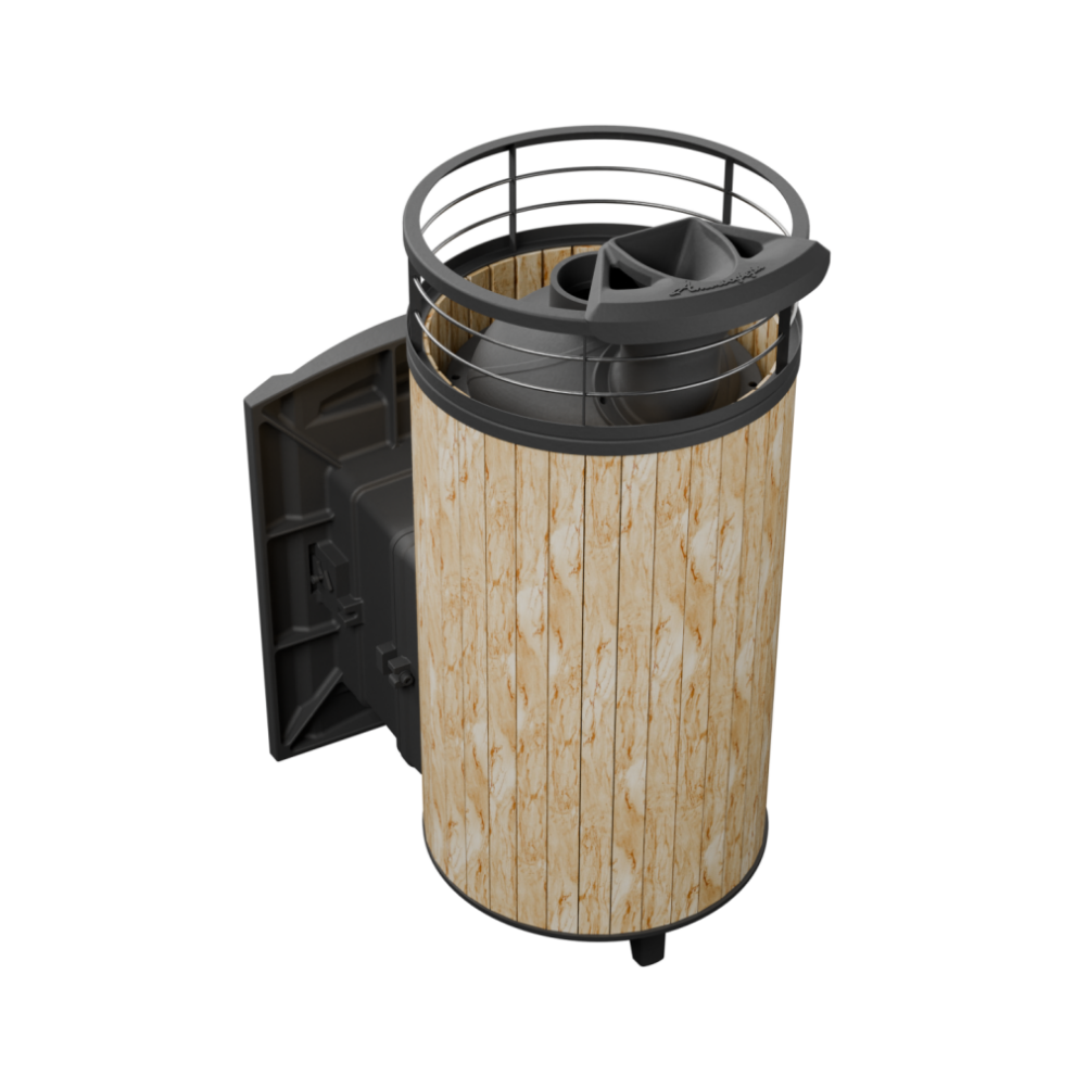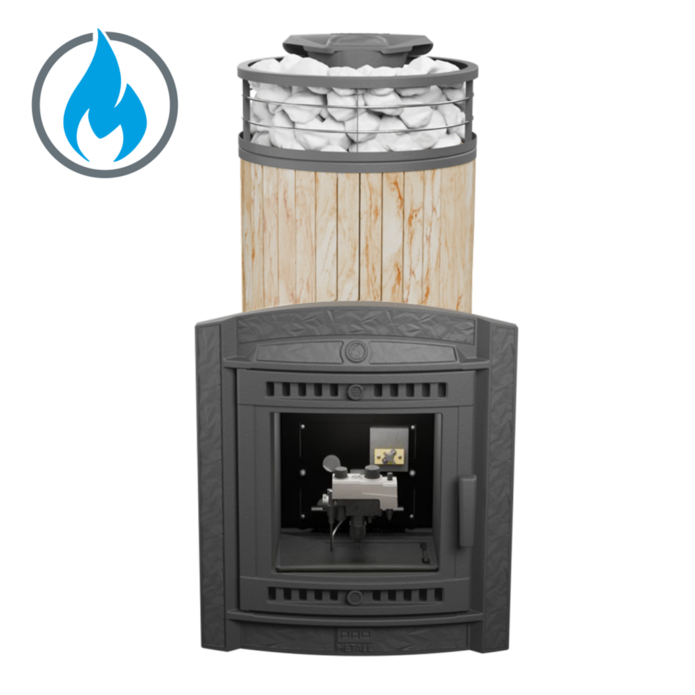 Печь банная «Атмосфера XL» окаменевшее дерево ламель + сетка с газовой горелкой