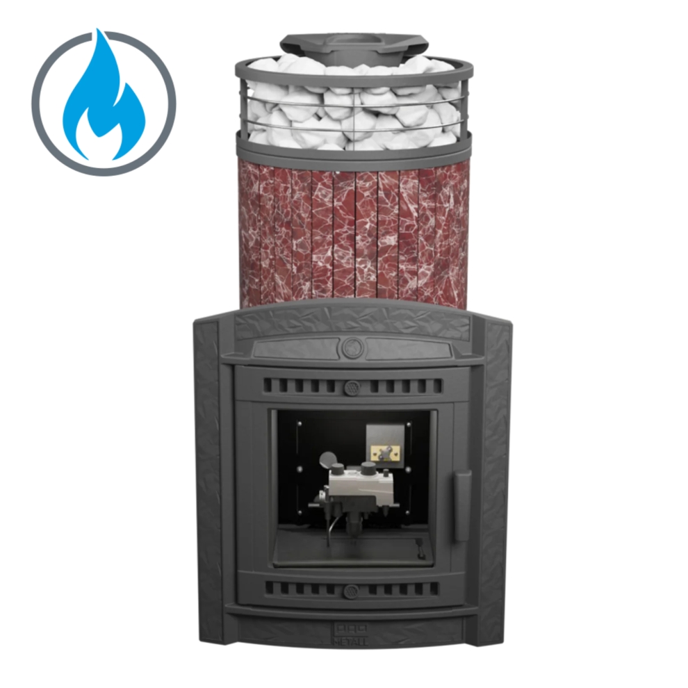 Печь банная «Атмосфера XL» россо леванте ламель + сетка с газовой горелкой