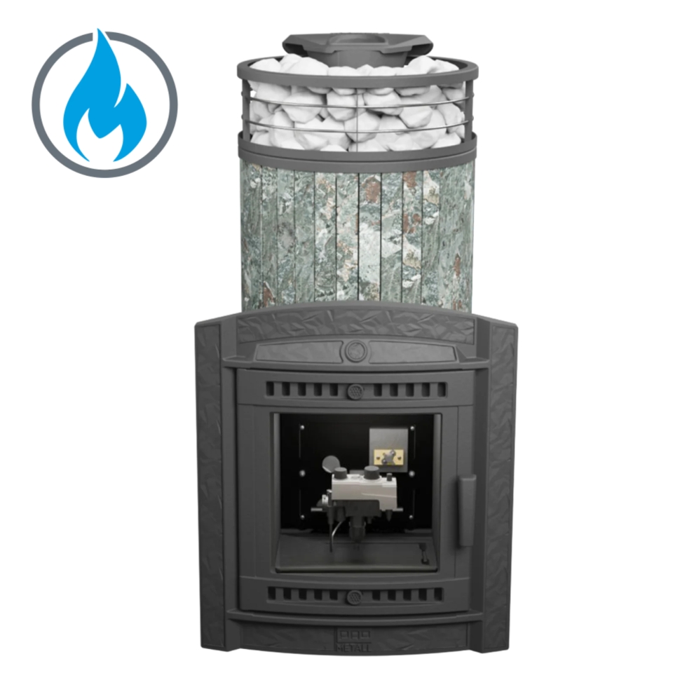 Печь банная «Атмосфера XL» жадеит ламель + сетка с газовой горелкой