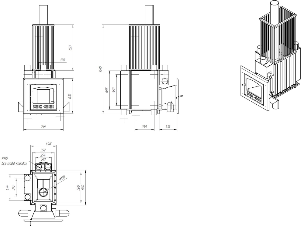 1) топочный агрегат Калита2) боковой и два фронтальных короба для организации воздухообмена