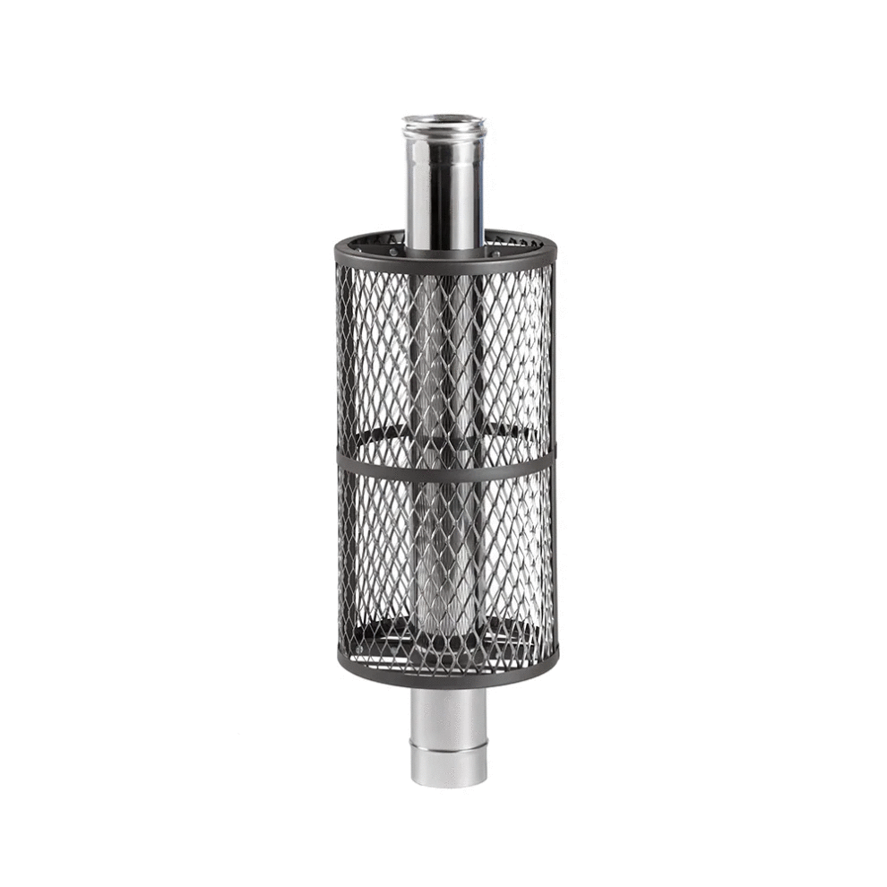 Сетка-каменка защищает от излучения, уменьшая поверхность открытой трубы, снимает тепло с ее стенок и направляет его на прогрев камней.