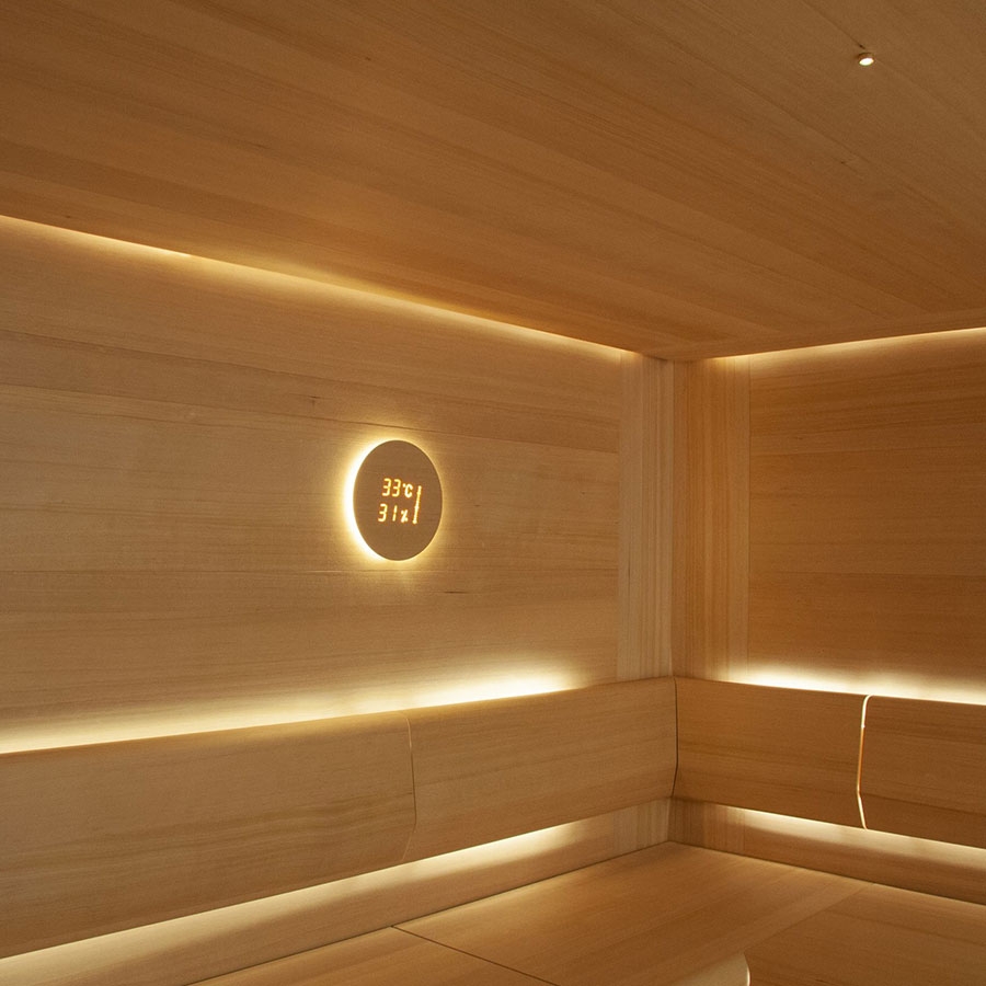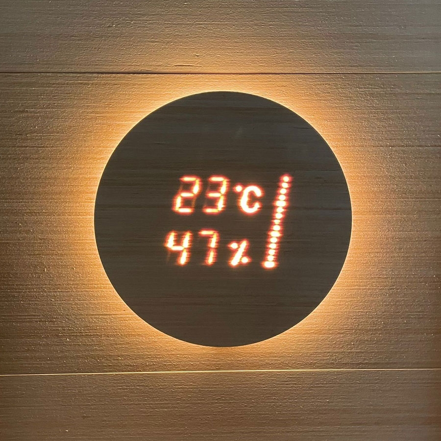 По форме — это круглая деревянная панель диаметром 230 мм из березового многослойного шпона. В панель встроены светодиоды. Свет проникает через шпон с внутренней стороны. Внешний слой панели изготавливается из березы, хемлока, а также березы, обработанной под древесину кело. Вы сами можете тонировать панель с помощью подходящего красящего средства, например воска Supi Saunavaha от Tikkurila.