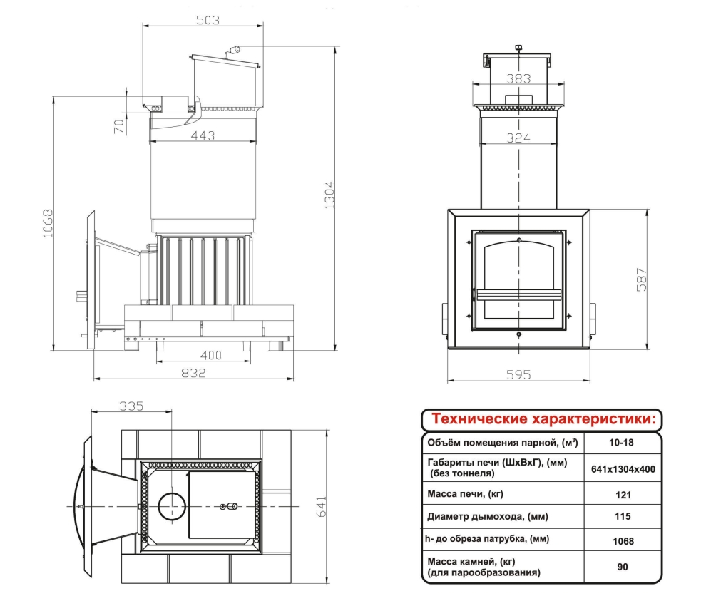 Если вы планируется топить печь из парильного помещения, вы можете приобрести эту модель с укороченным тоннелем и стальной окрашенной дверкой.