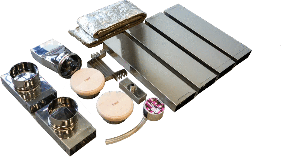 Комплект предназначен для сборки системы вентиляции в бане или сауне. Системы вентиляции предназначены для эффективного двухуровнего осуществления и регулировки воздухообмена в парильном помещении, а так же обеспечения сбалансированного микроклимата.
